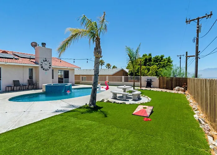 Angel View Resale Store and Guy J Tedesco Park are respectively within 4 km and 4.2 km of the venue. It is located 5 km from the centre of Desert Hot Springs. Cabot's Pueblo Museum is a short taxi ride away. The nearest airport is Palm Springs airport, 25 km from this in Desert Hot Springs.